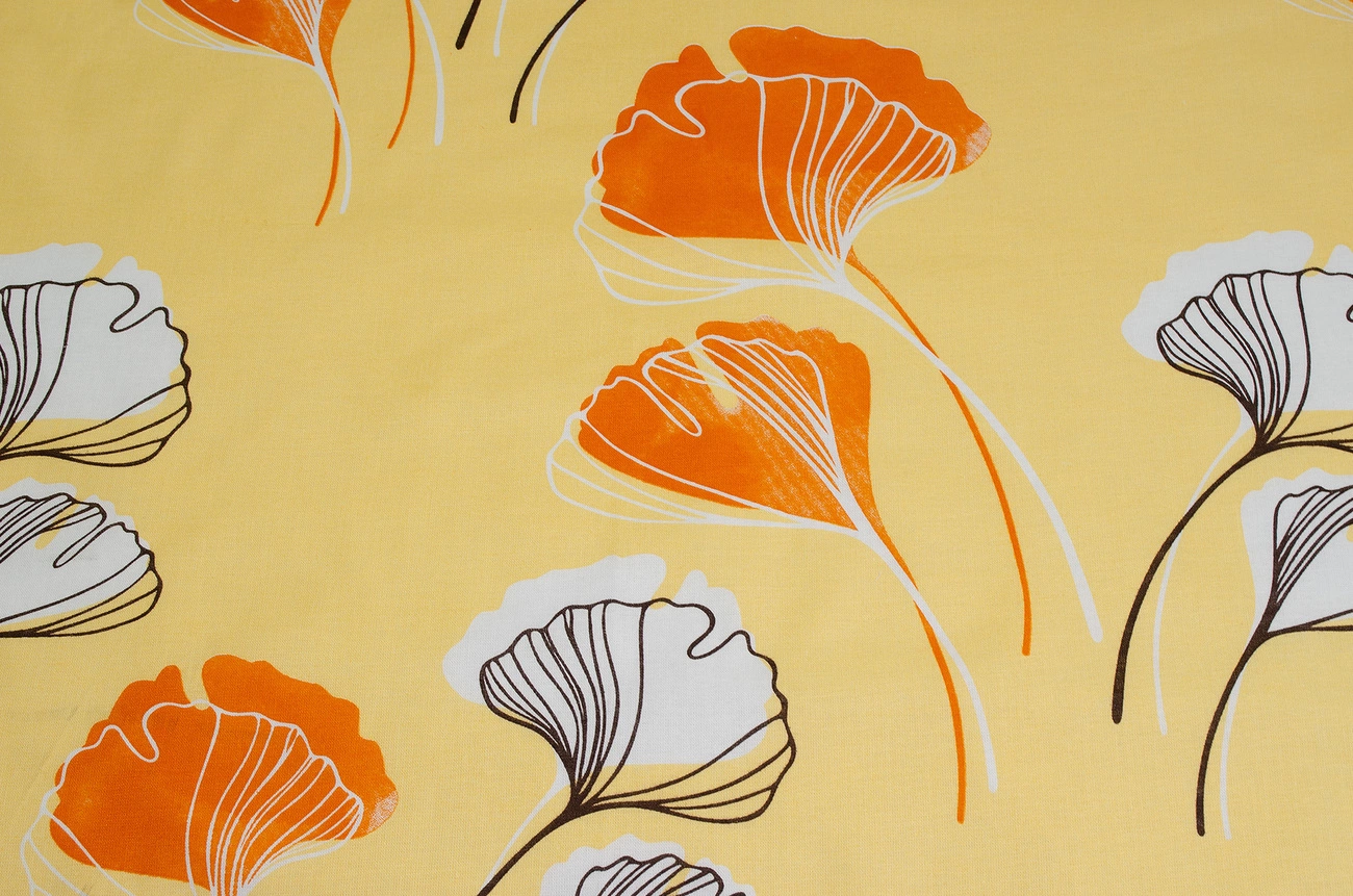 Бязь набивна "Гінко білоба" помаранчева 150см (140г/м2) 155814