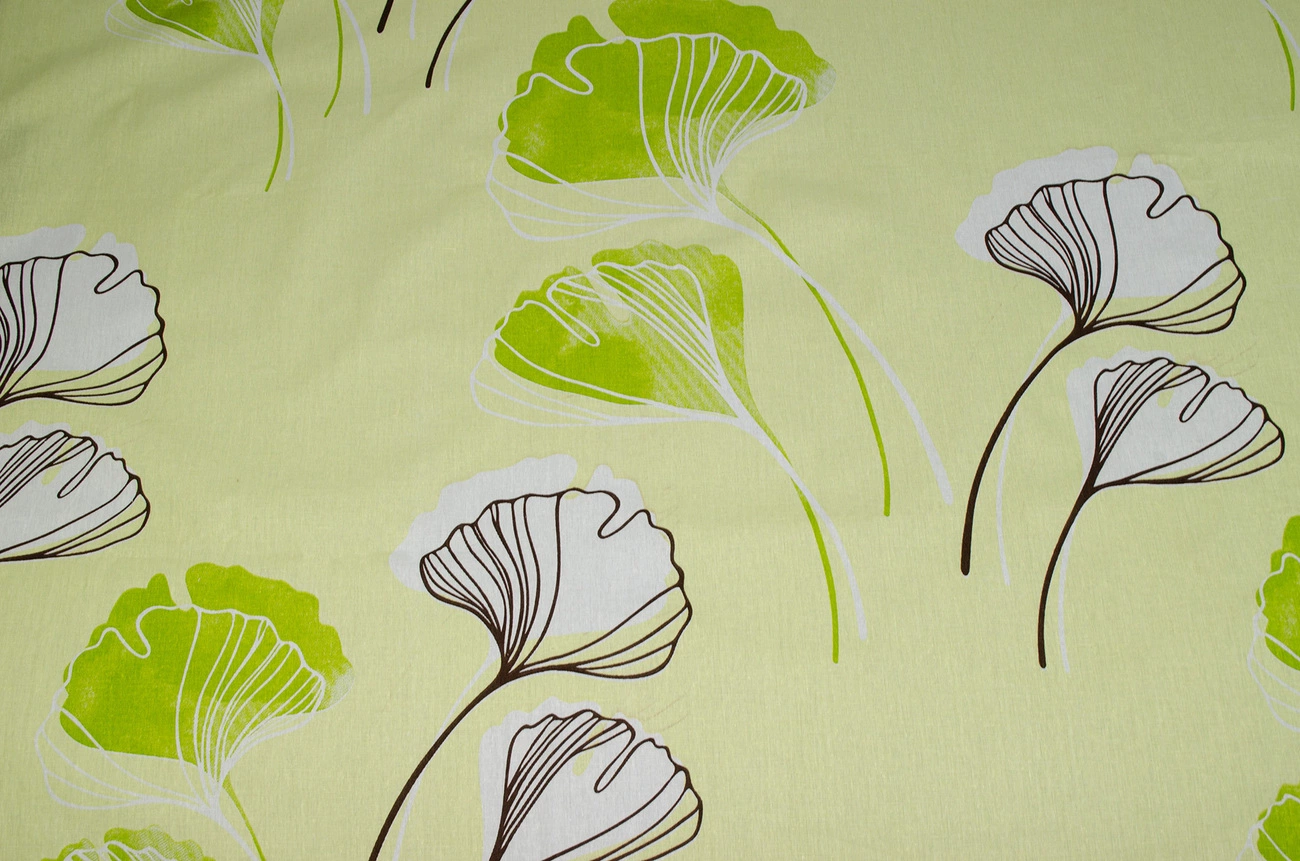 Бязь набивна "Гінко білоба" салатова 150см (140г/м2) 155525