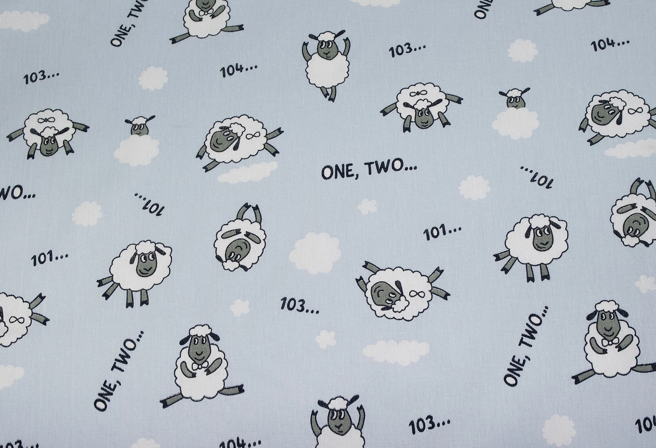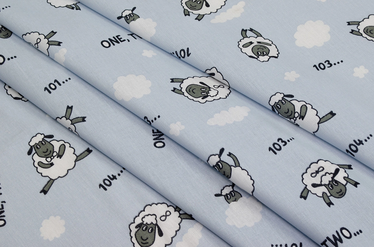 Бязь набивна "Ягнята" сіро-блакитна 150см (140г/м2) 155499