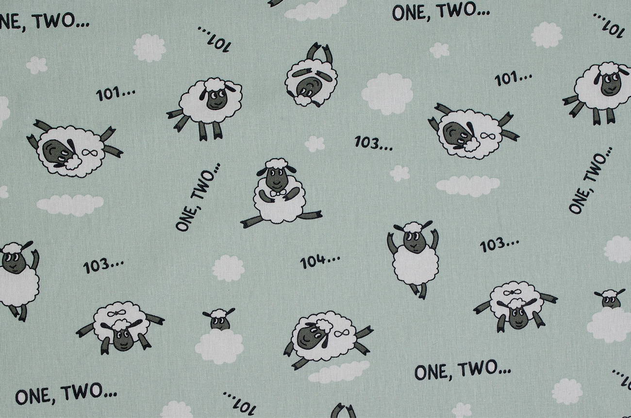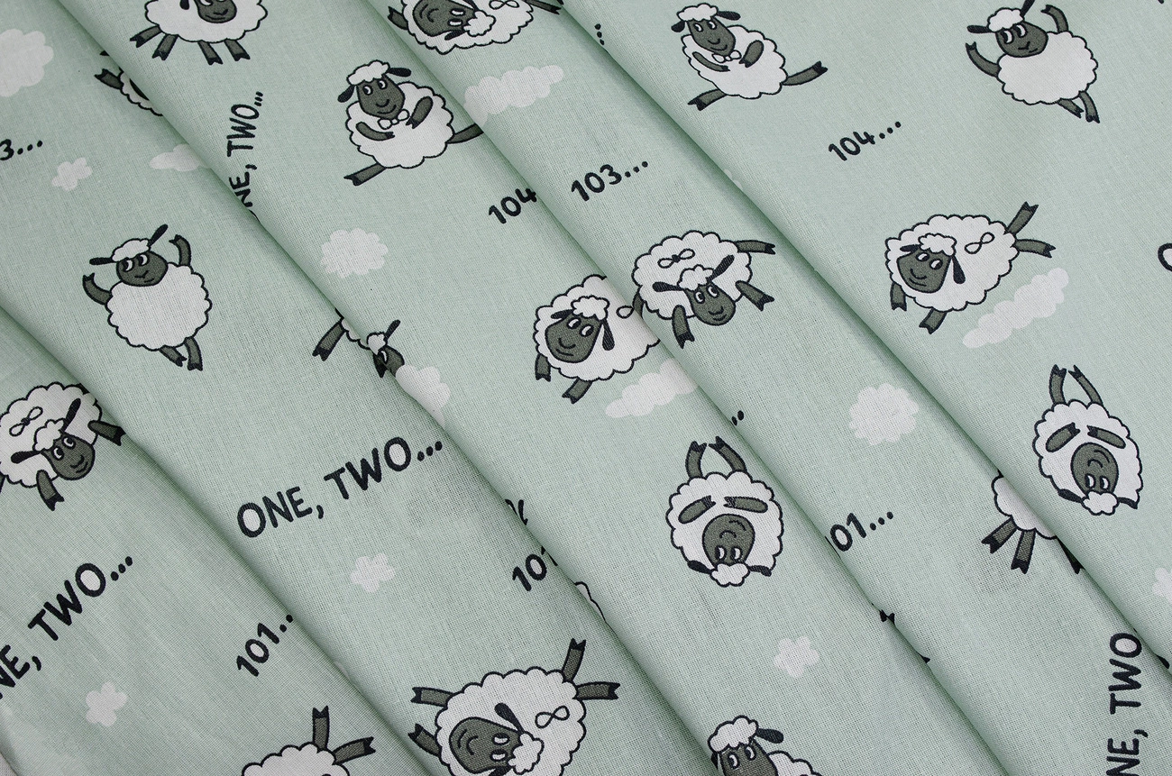Бязь набивна "Ягнята" зелена 150см (120г/м2) 154516
