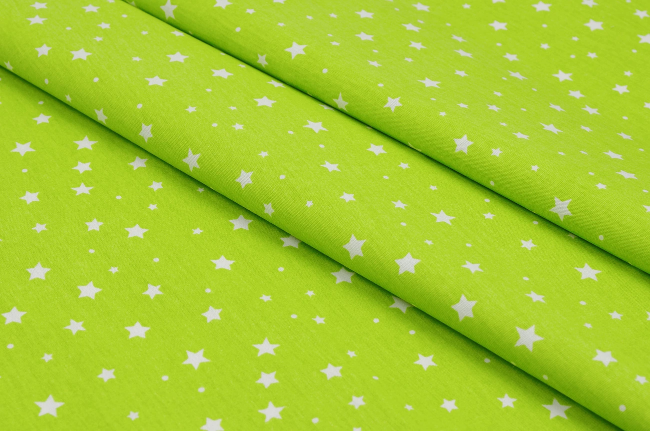 Бязь набивна "Зірки" лайм 150см (140г/м2) 159385