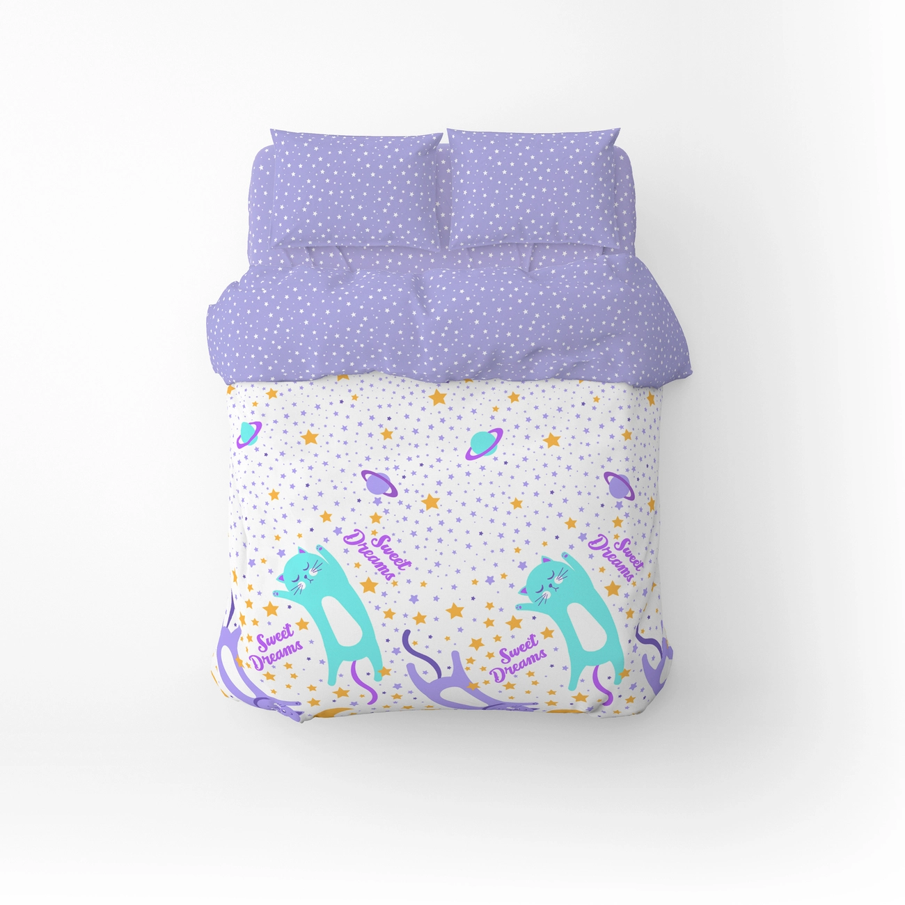 Дитячий комплект постільної білизни Home Line "Коти та зорі" (бірюзовий, бузковий) 162250