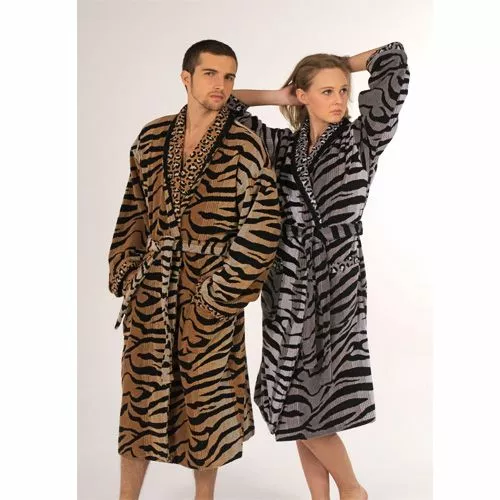 Халат махровий з тигровим забарвленням в сірих і коричневих тонах.