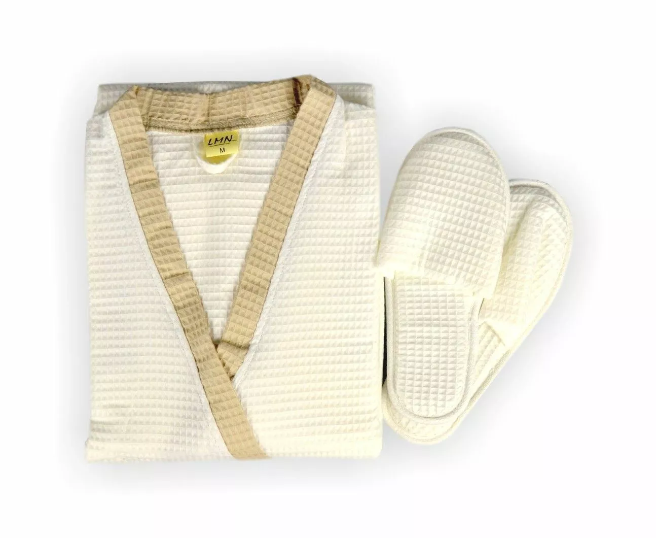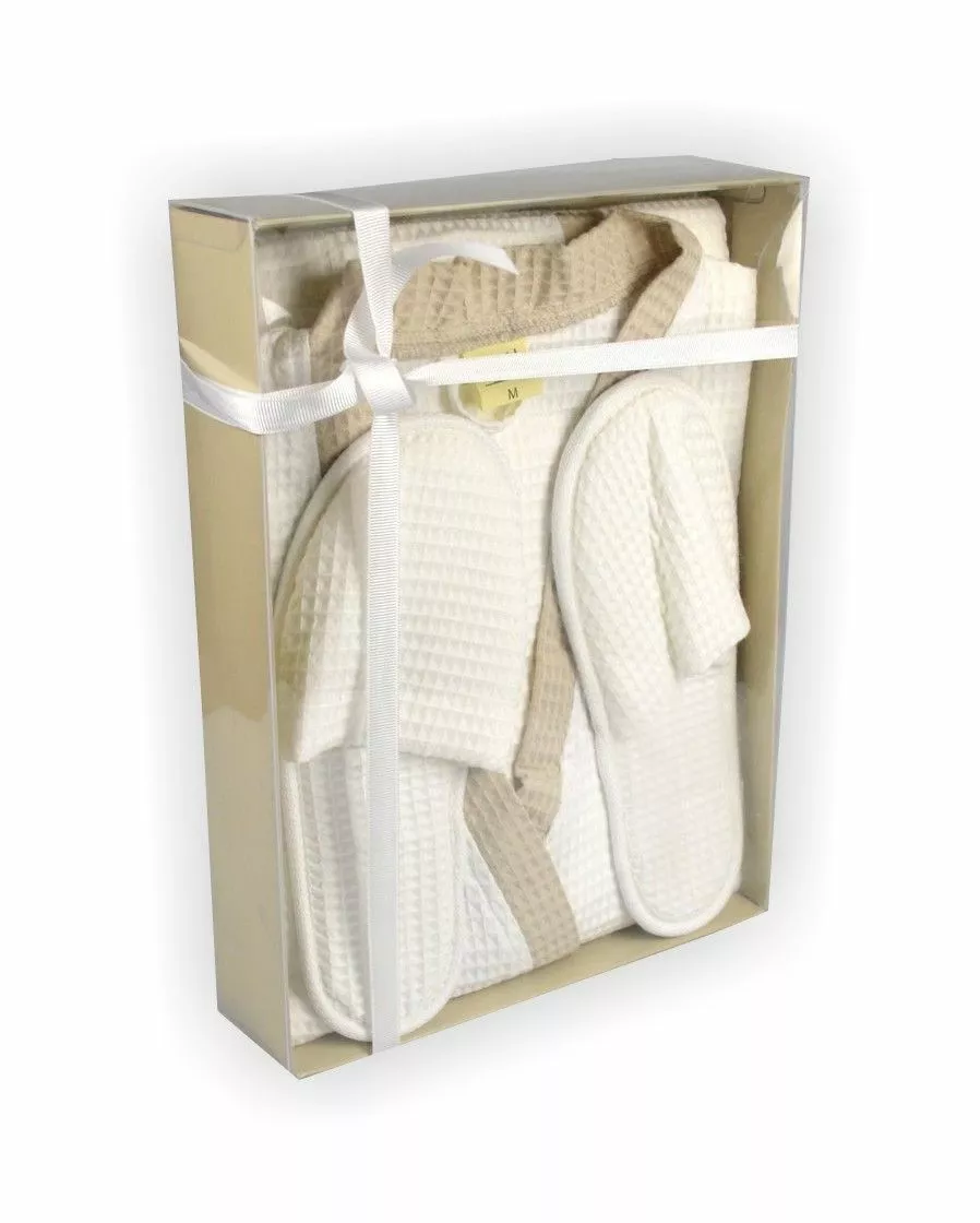 Халат вафельний L кімоно (біло-бежевий) 122770