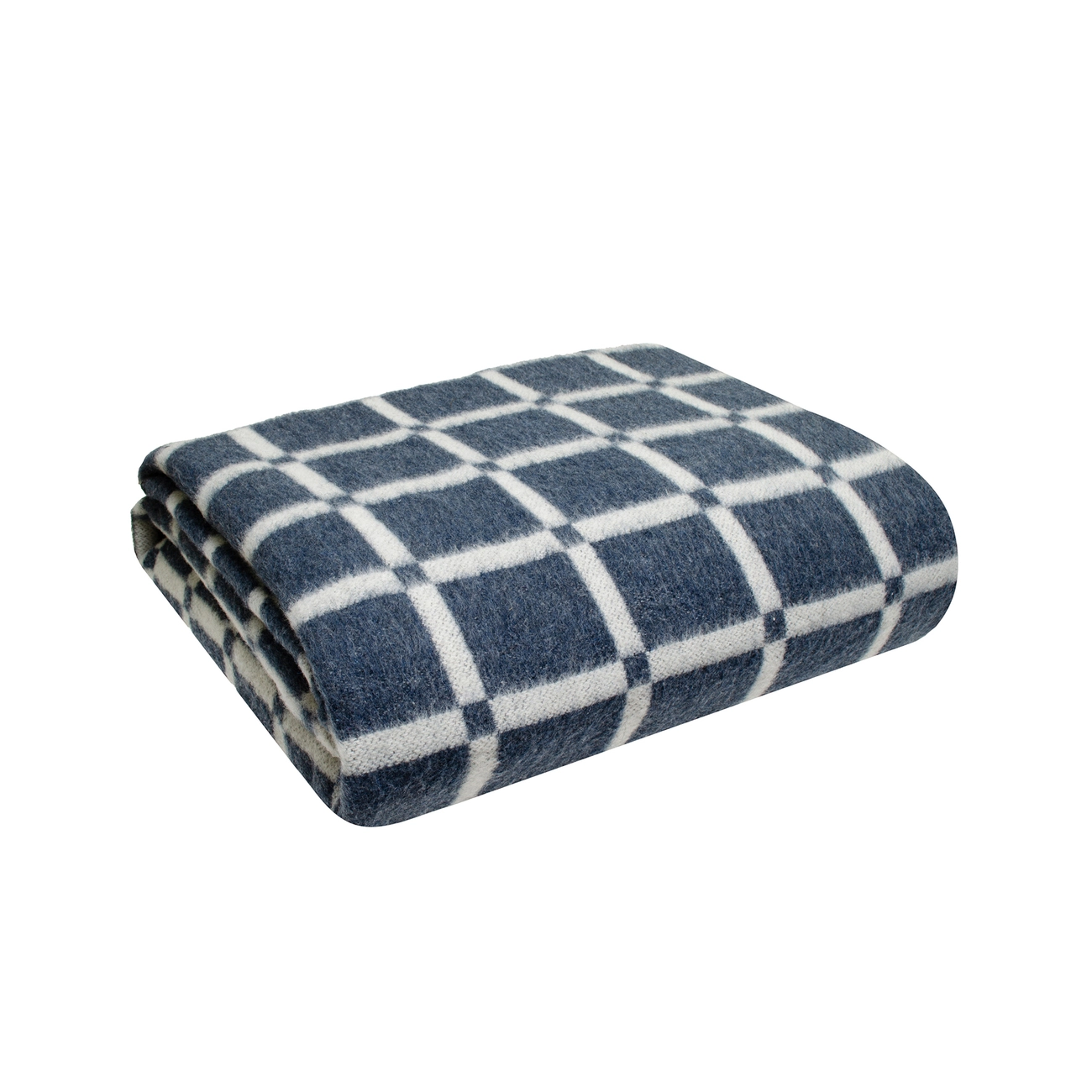 Вовняна ковдра "Клітинка" синя пухнаста і надзвичайно тепла. Вона