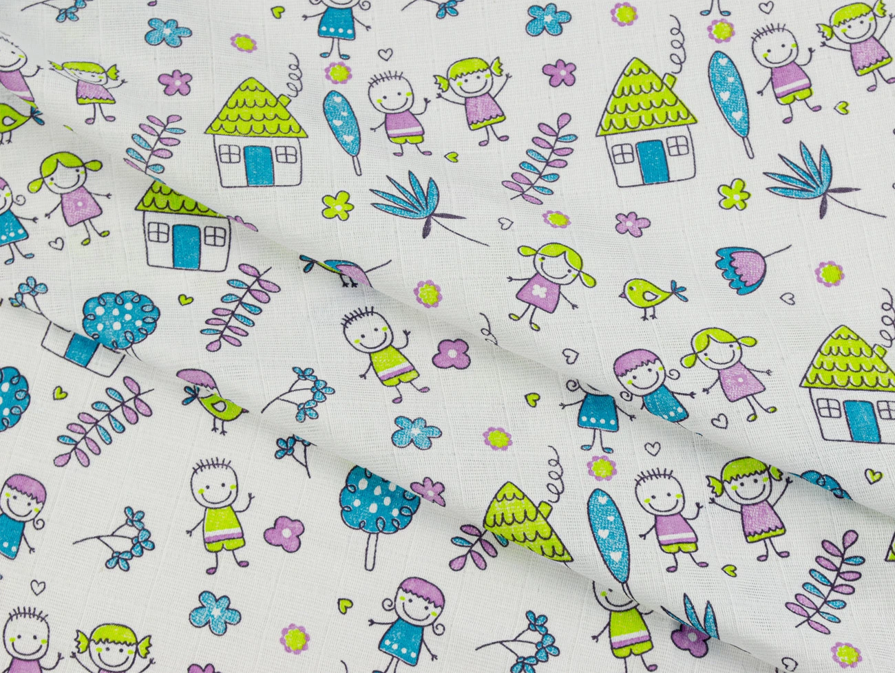 Муслін набивний "Дівчатка та хлопчики" салатовий 150см (100г/м2) 154229