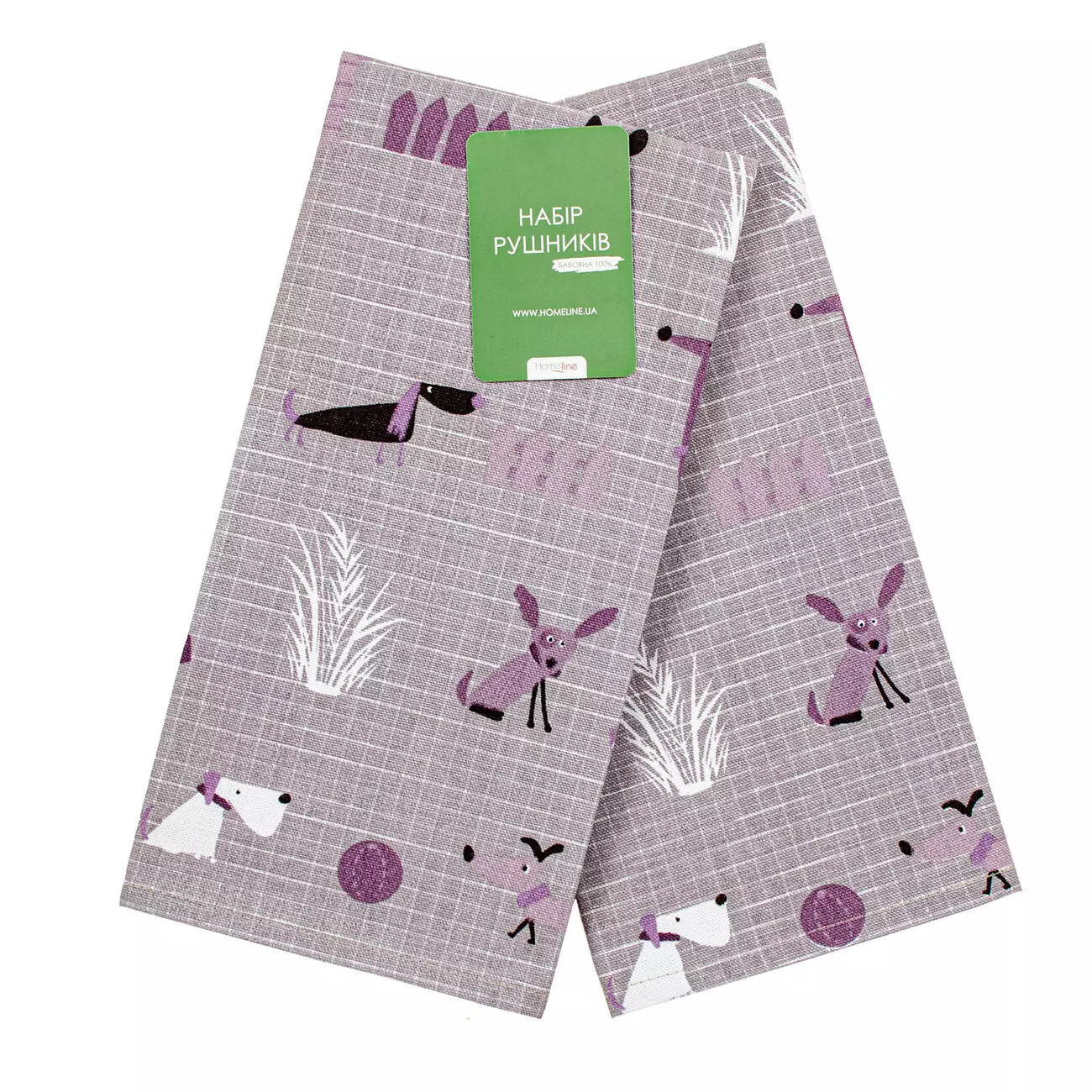 Набір кухонних рушників вафельних "Гав-гав" (сіро-бузковий) 45x60см - 2 шт. 179707