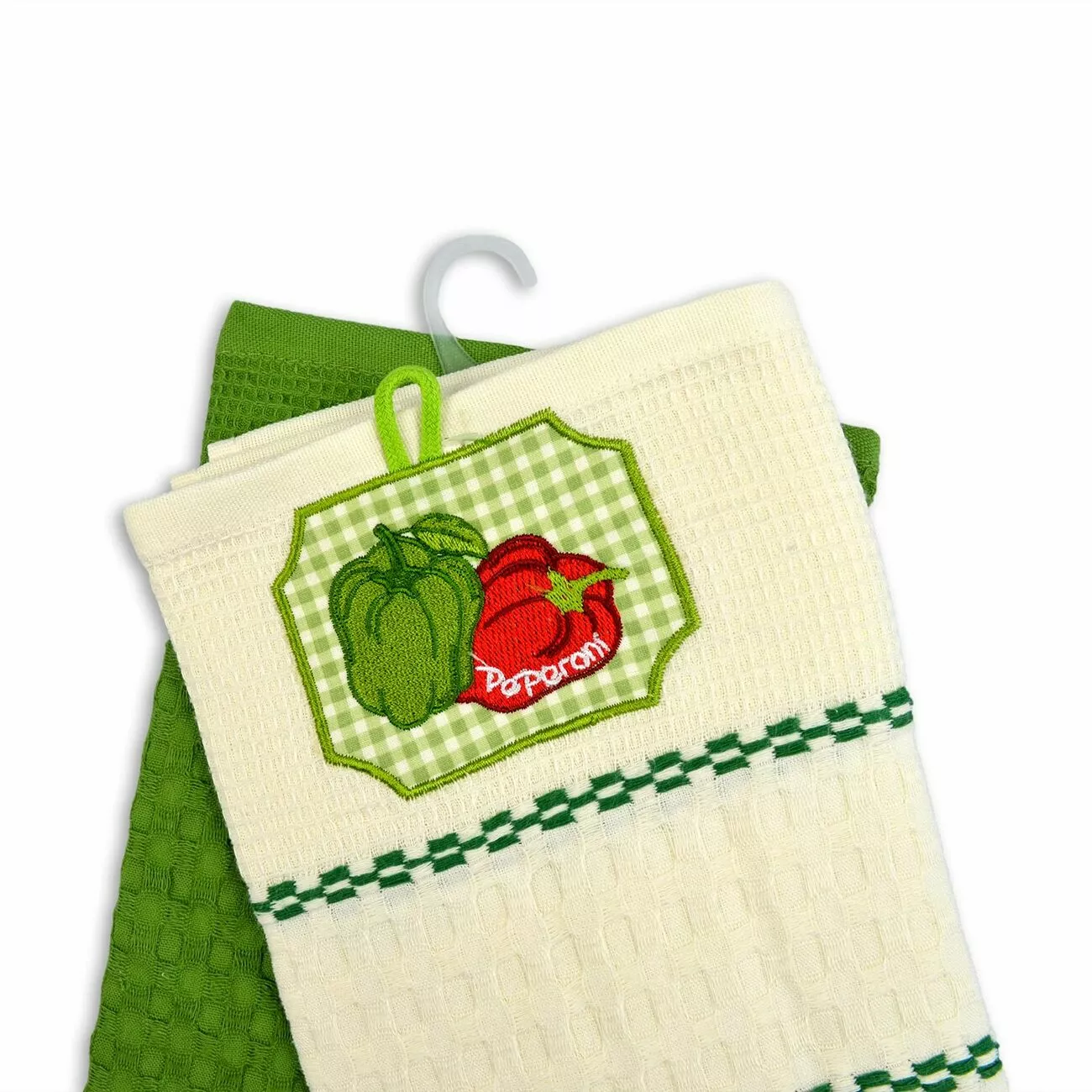 Набір рушників вафельних кухонних 2 шт. Home Line «Перець» (біло-зелений) 45х70см 134490
