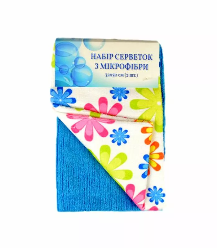 В наборі 2 серветки із мікрофібри: однотонна і з принтованим
