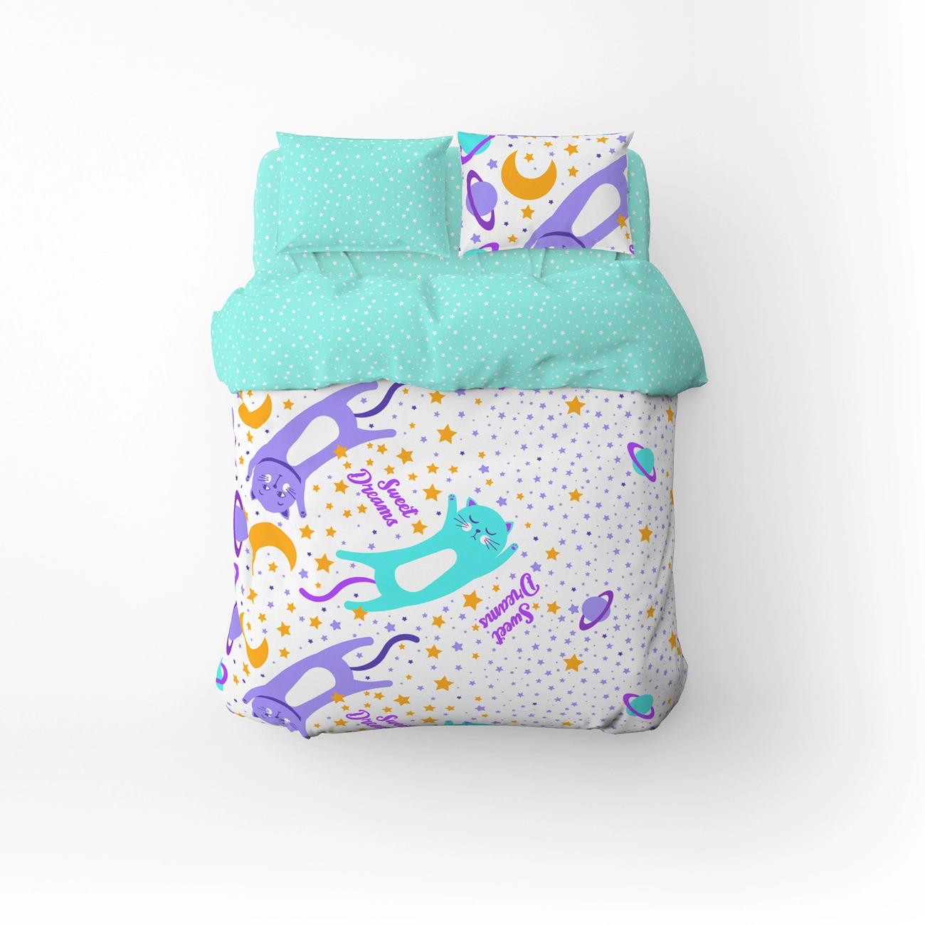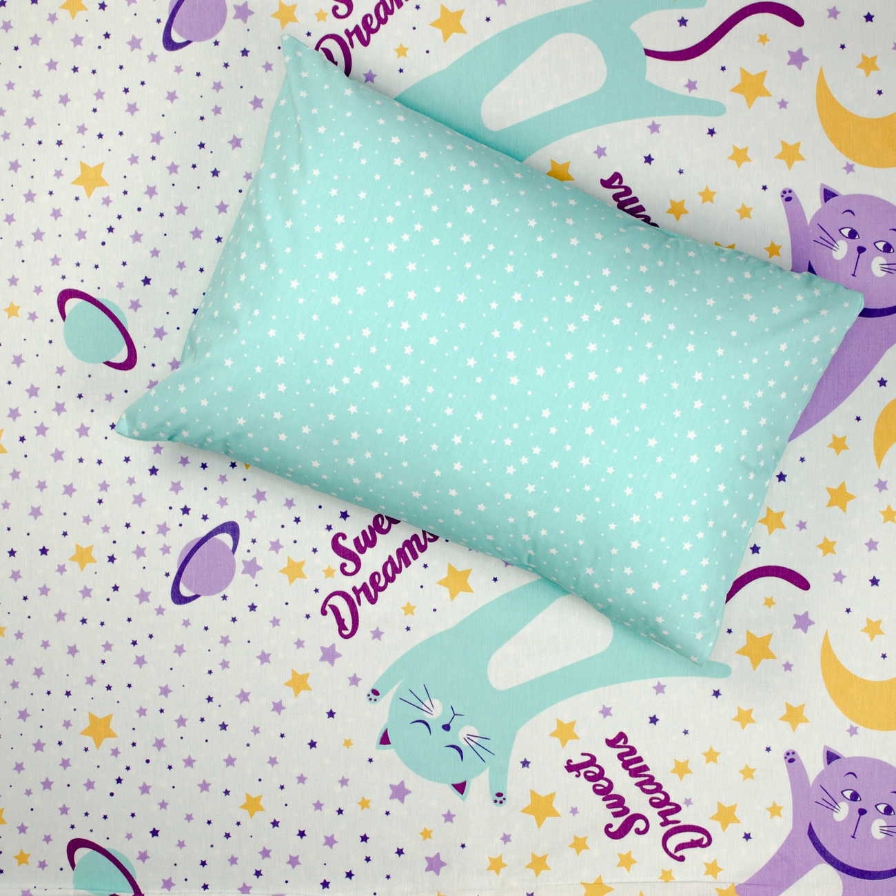 Півтораспальний комплект постільної білизни Home Line "Коти та зорі" (бірюзовий) 162243