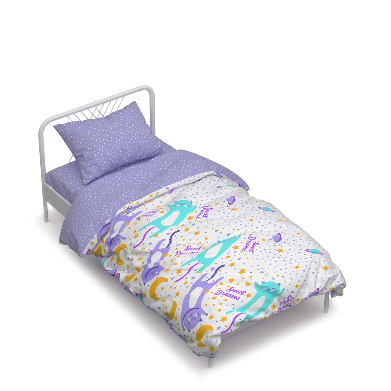 Півтораспальний комплект постільної білизни Home Line "Коти та зорі" (бірюзовий, бузковий) 162244
