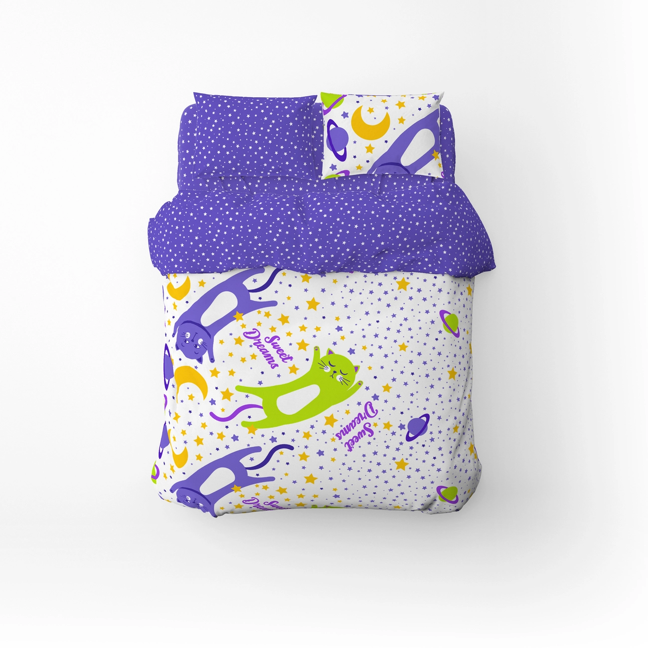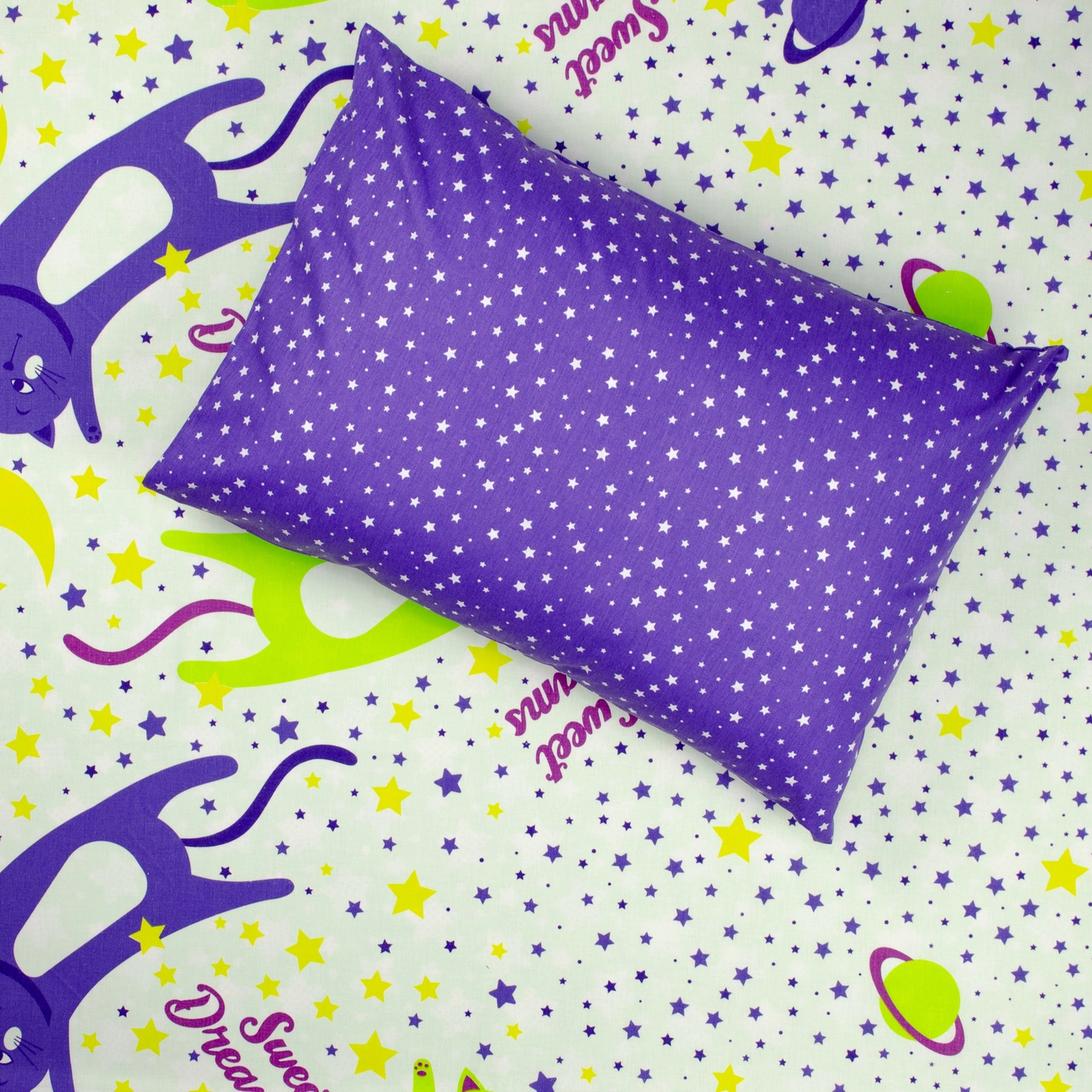 Півтораспальний комплект постільної білизни Home Line "Коти та зорі різні" (фіолетовий) 162241