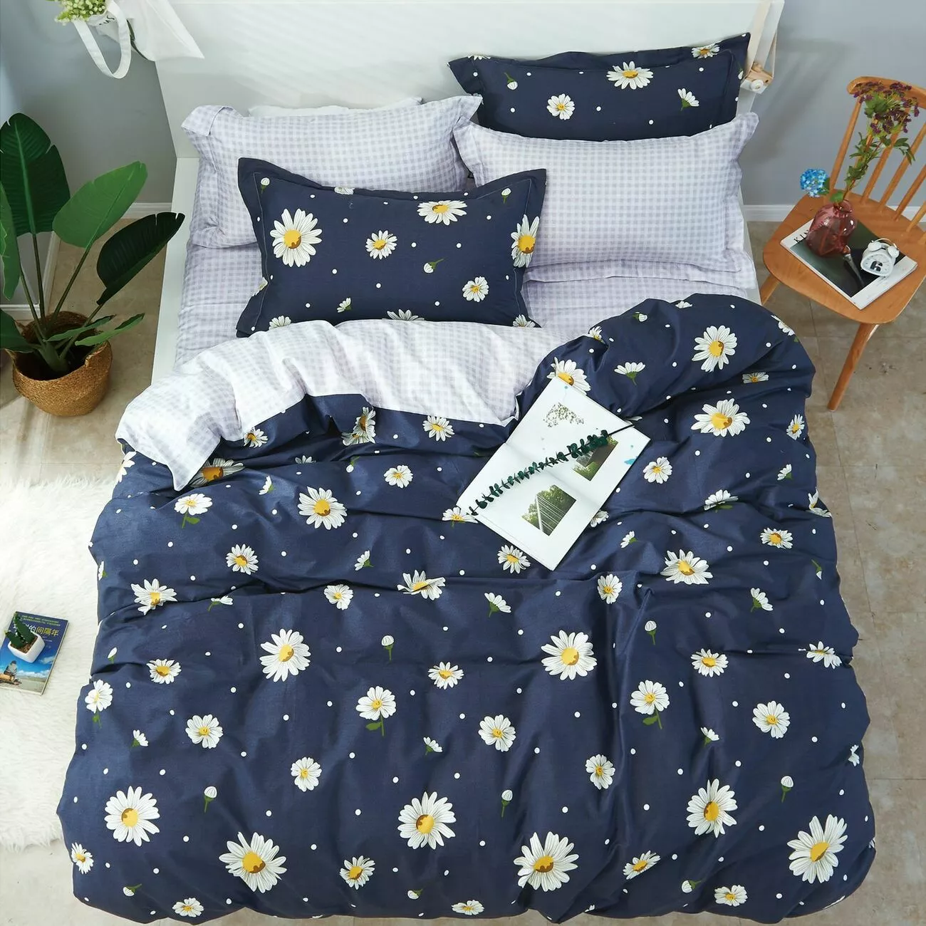 Півтораспальний комплект постільної білизни Home Line "Ромашкова ніч" 137501