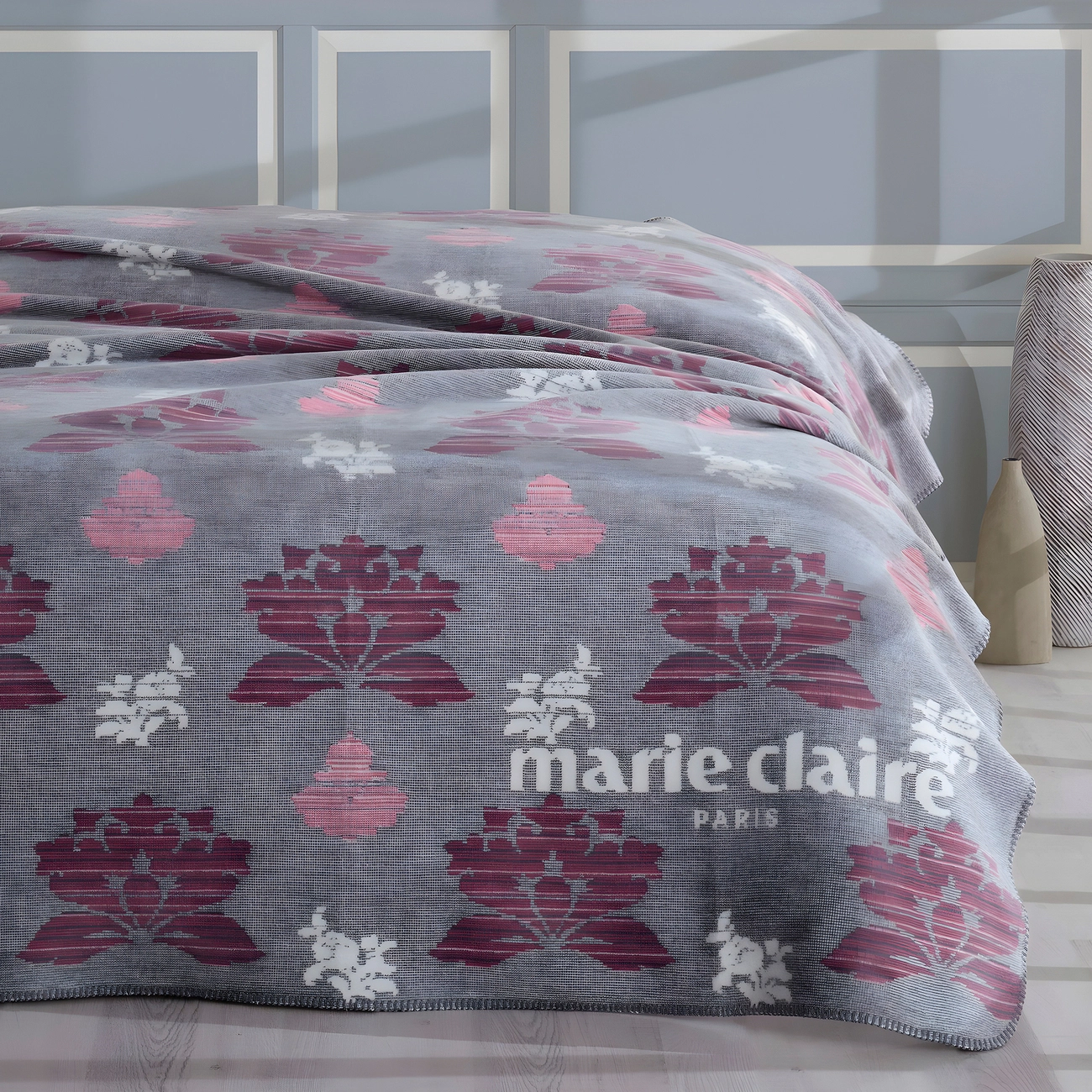 Плед Marie Claire "Квіти" (сірий) 200х220см 168825