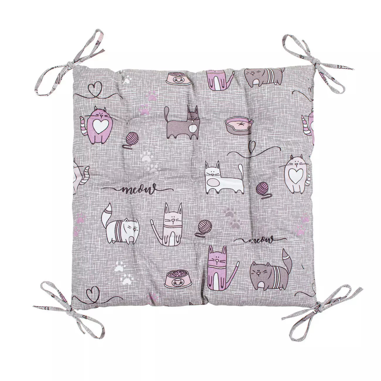 Подушка декоративна з зав'язками на стілець Home Line "Кіт на кухні" (сіро-бузковий) 40х40см 175286