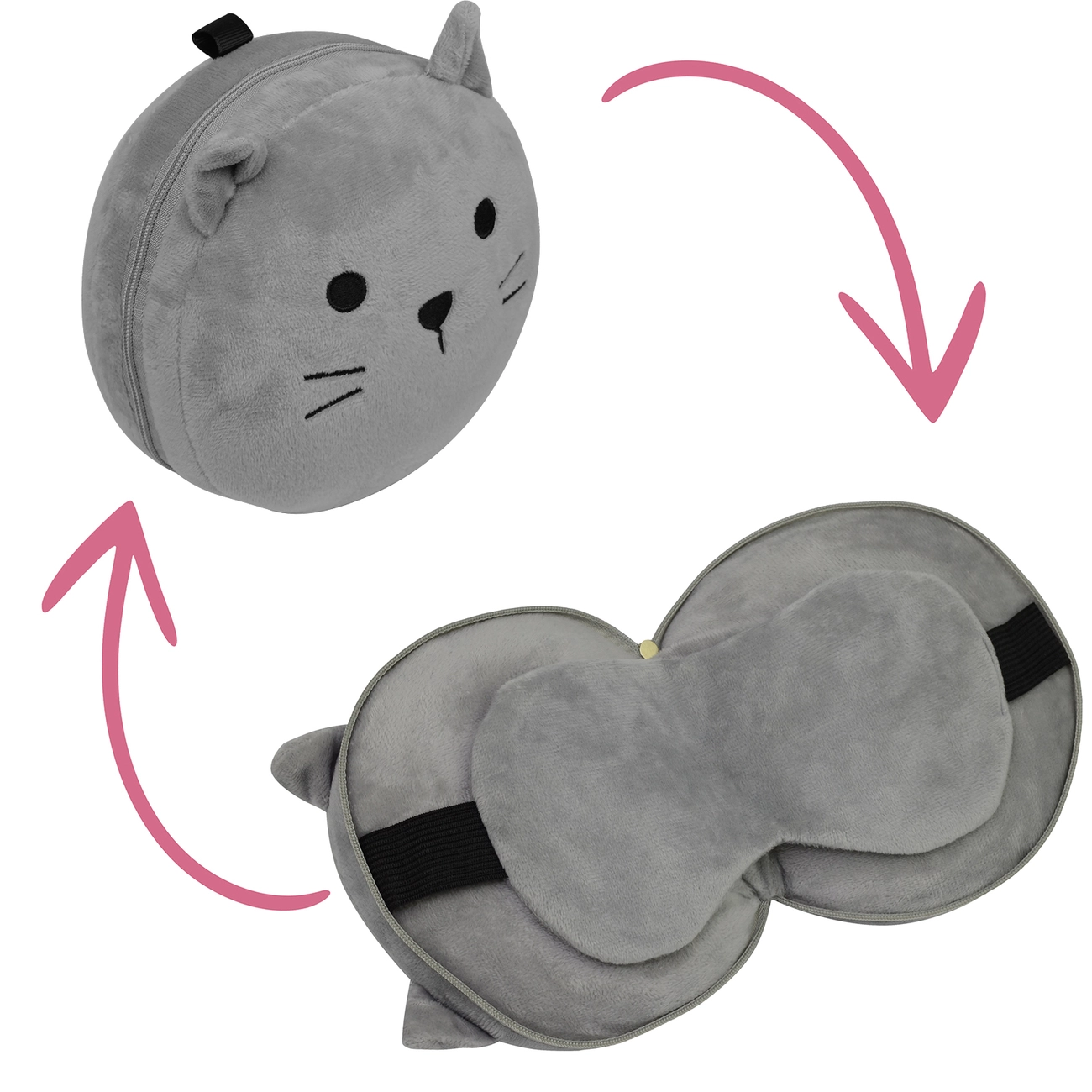 Подушка дорожня косметичка з маскою для очей Home Line "Сіре кошеня" 151351