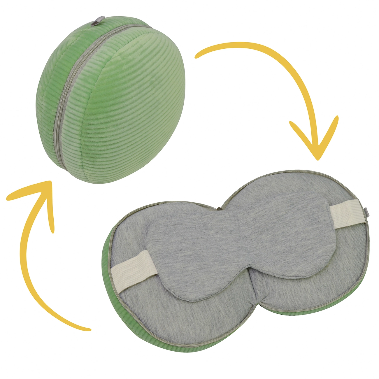 трансформується в зручну подушку з маскою для очей. Вона легка і