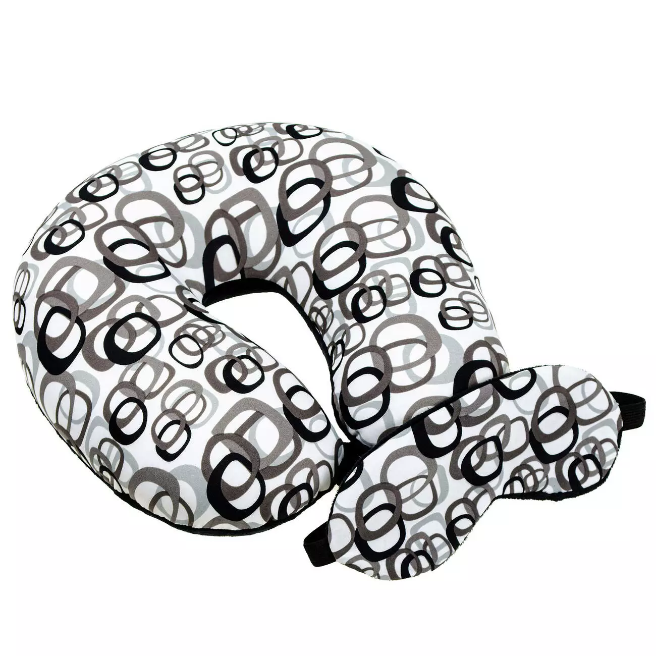 Подушка-рогалик дорожня і пов'язка для очей Home Line "Білий з Кавовими Кругами" 30x30см 179150