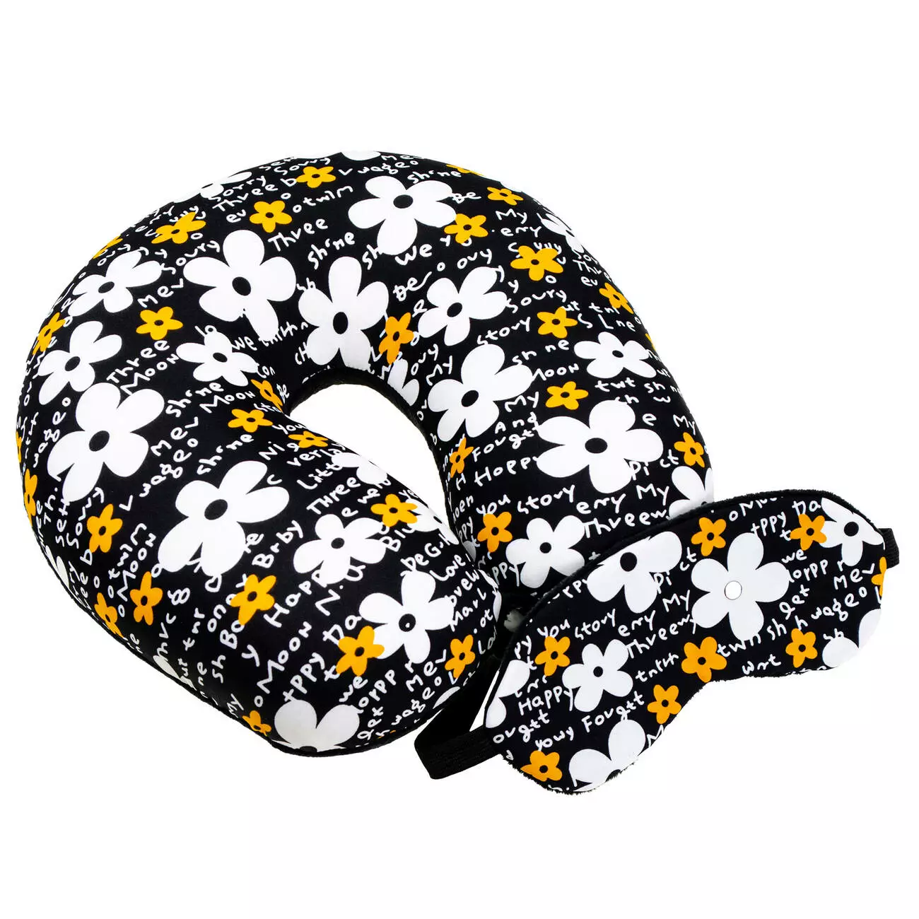 Подушка-рогалик дорожня і пов'язка для очей Home Line "Чорно-Білі Квітки" 30x30см 179135