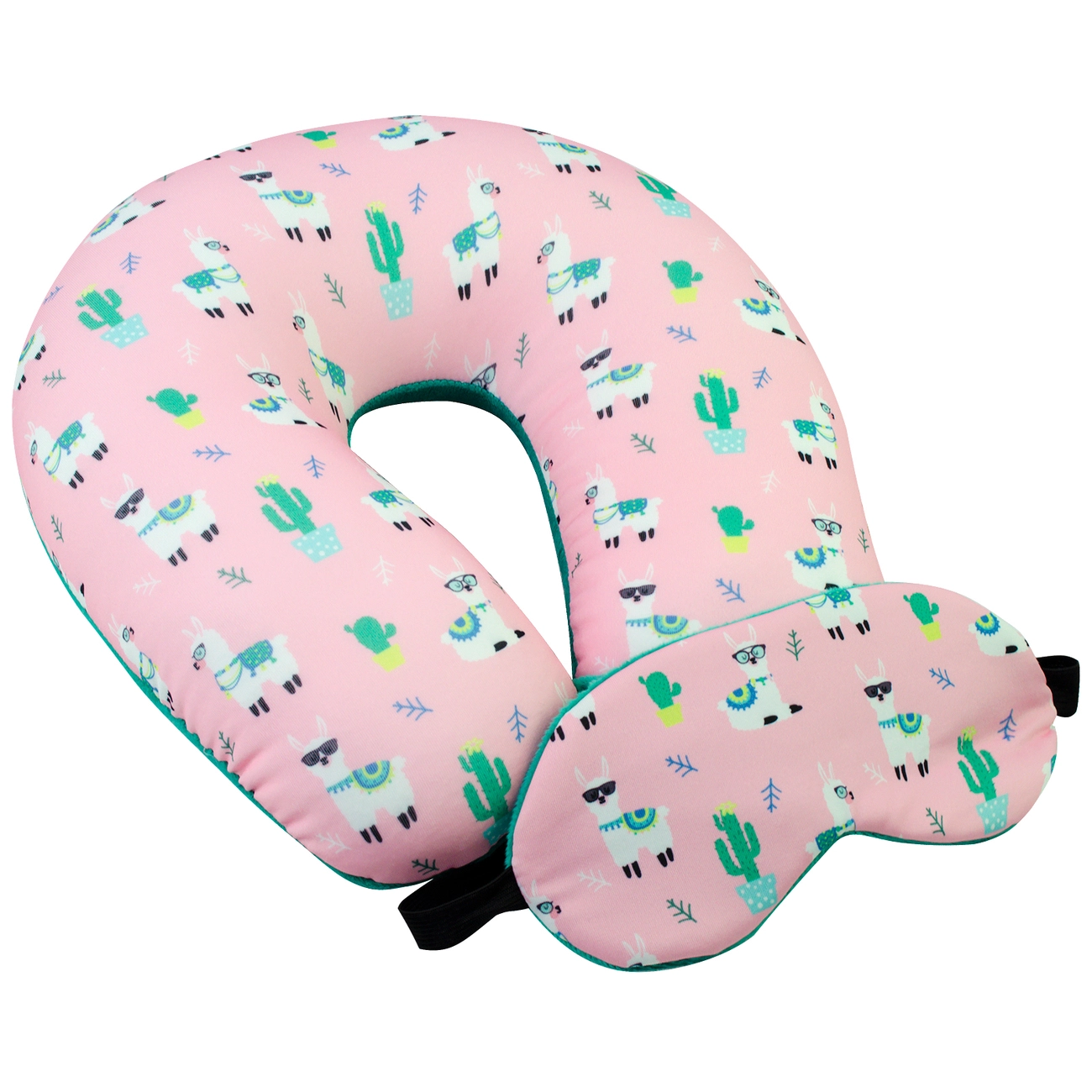 Подушка-рогалик дорожня і пов'язка для очей Home Line "Лама" (розовая) 30х30см 152640