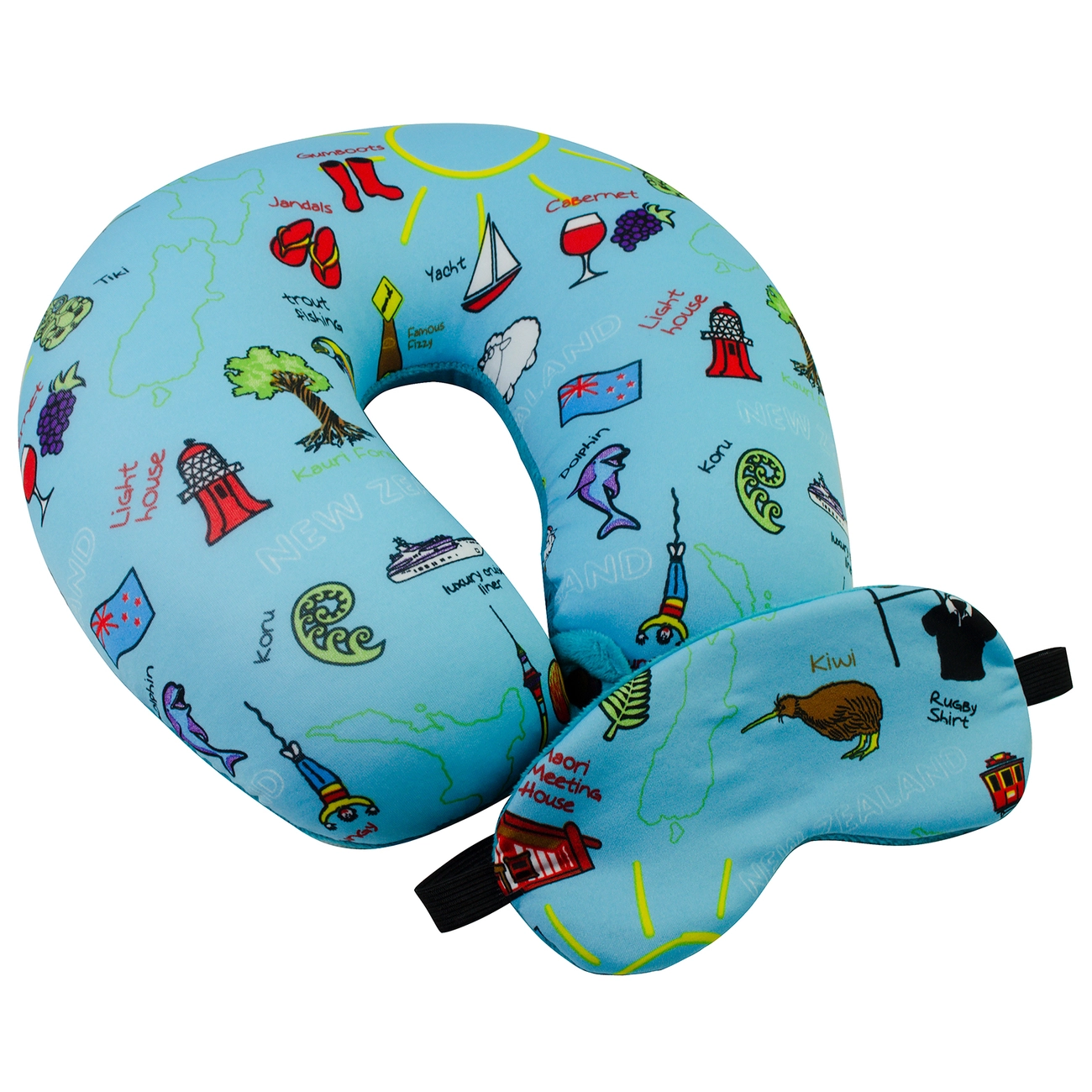 Подушка-рогалик дорожня і пов'язка для очей Home Line "Подорожі" (блакитна) 30х30см 152641