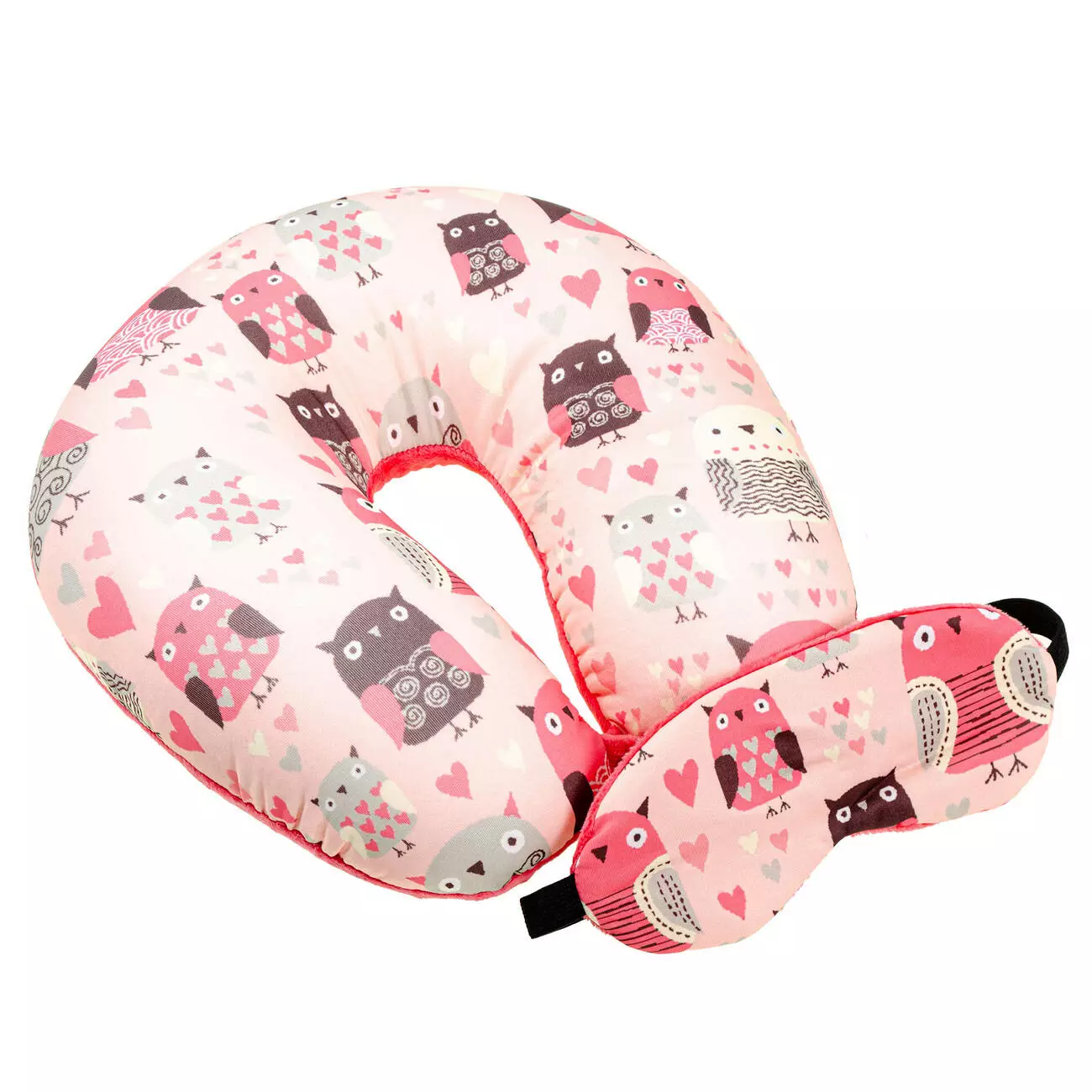 Подушка-рогалик дорожня і пов'язка для очей Home Line "Рожеві Сови" 30x30см 179149