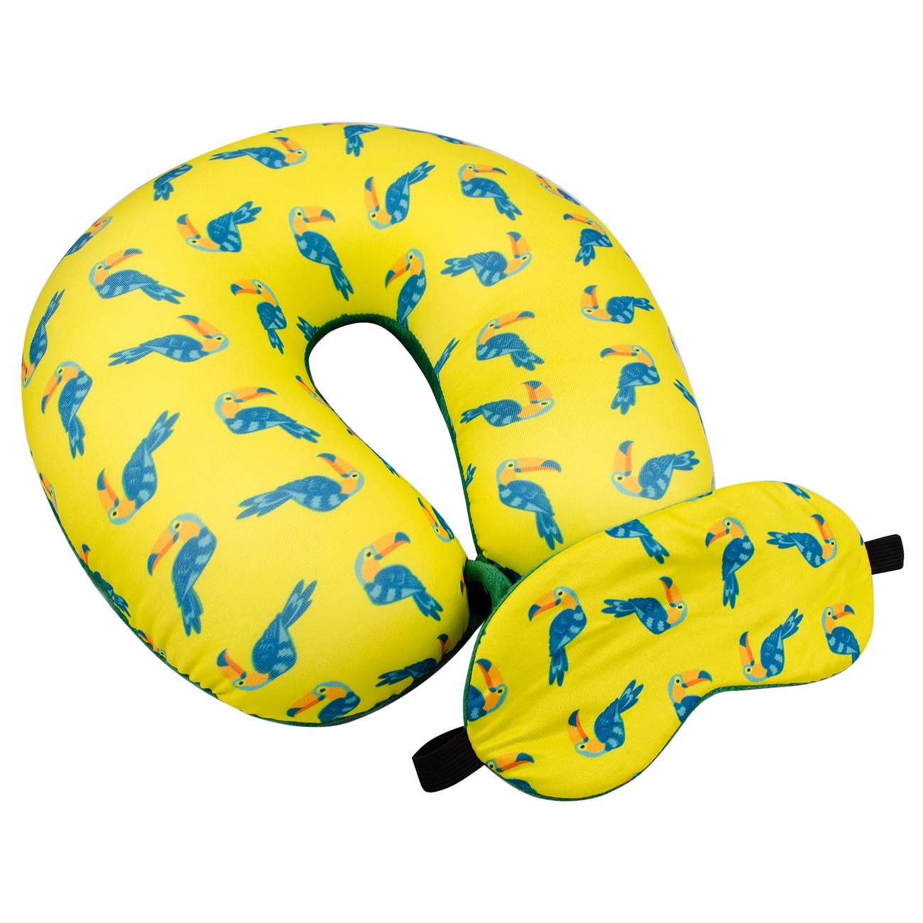 Подушка-рогалик дорожня і пов'язка для очей Home Line "Тукан" (жовто-зелений) 30х30см 158807