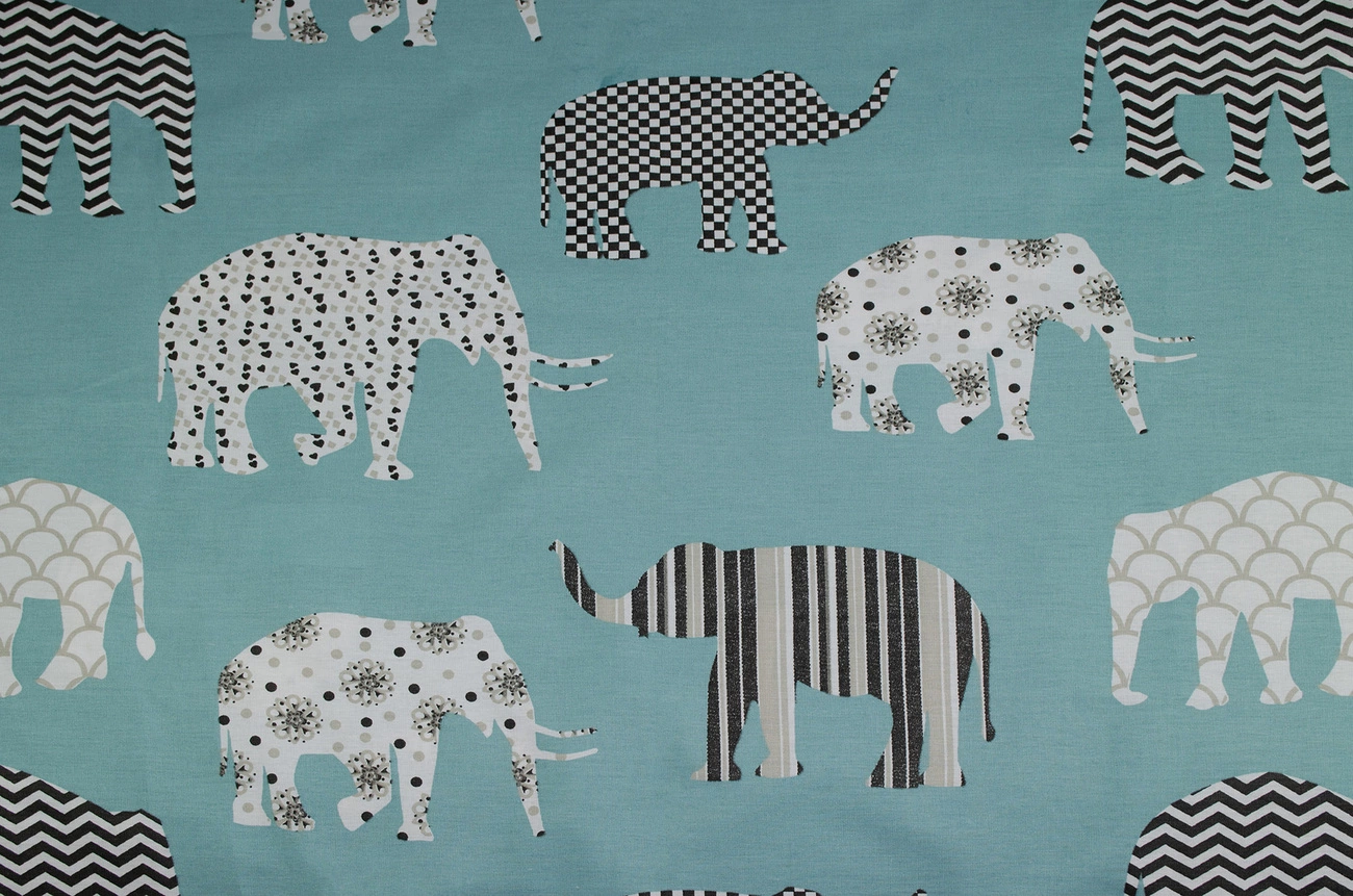 Поплін набивний "Слони" зелений 150см (105г/м2) 154234