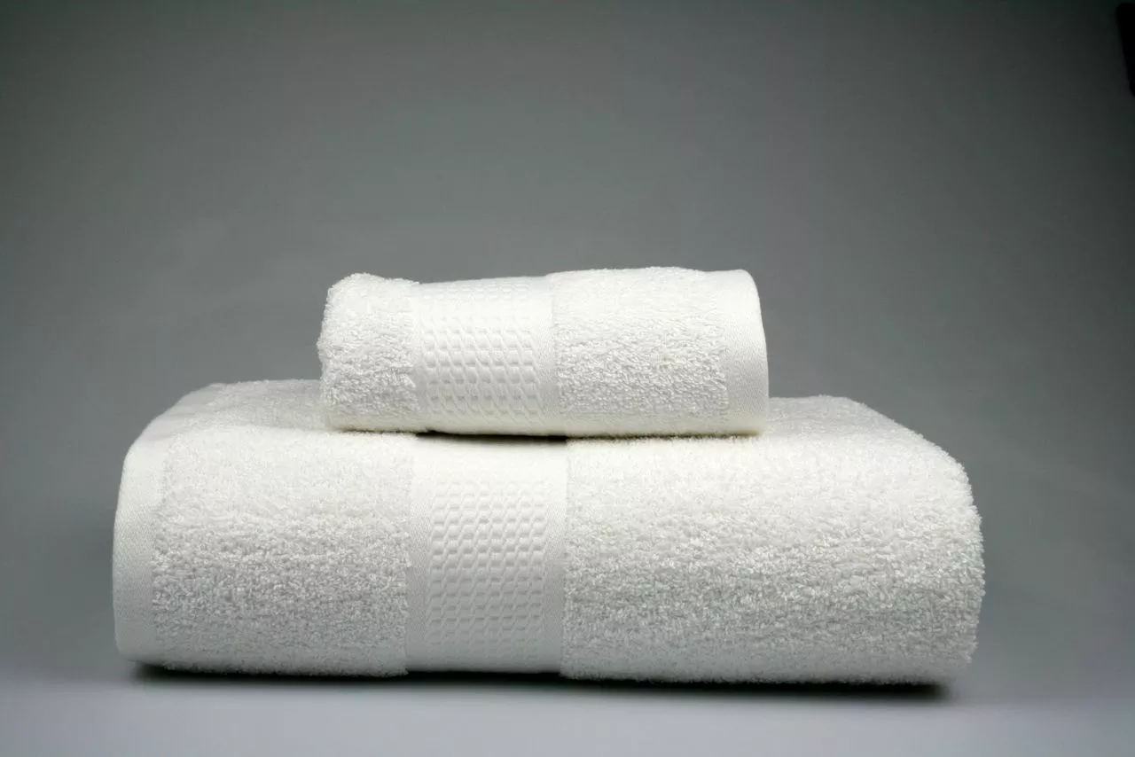 Стильний махровий рушник з бордюром. Має гарний, приємний колір.