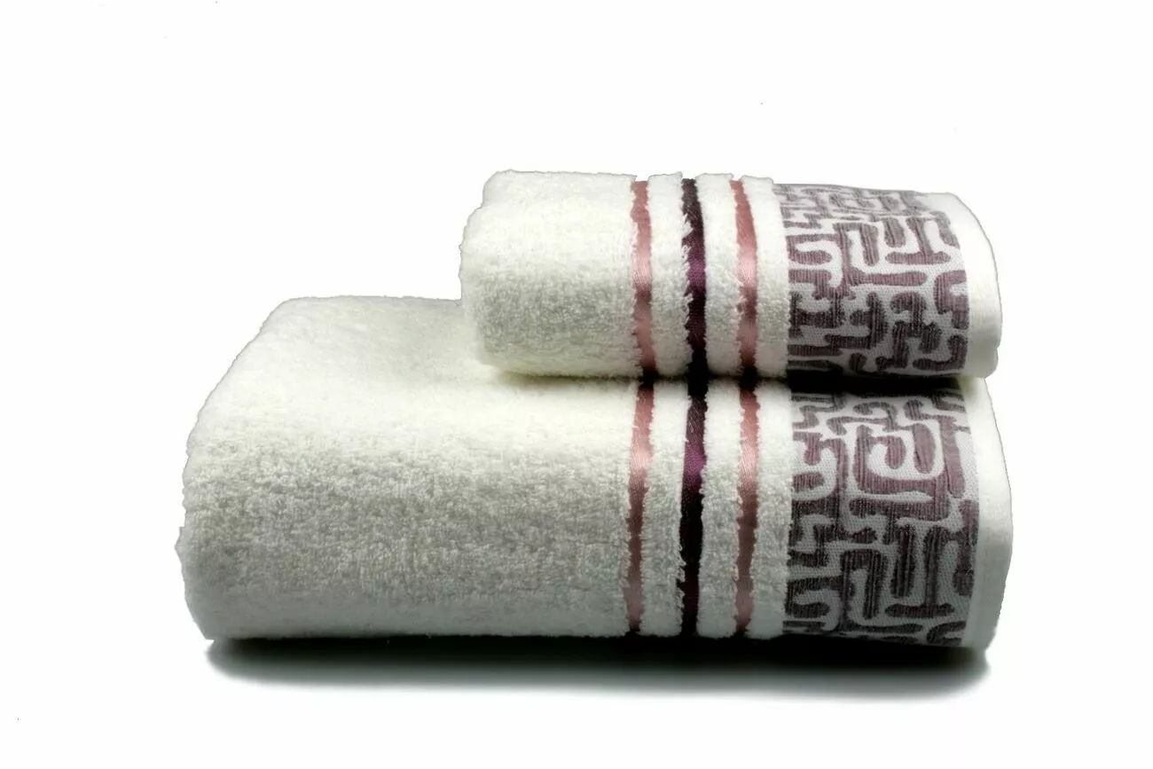 Махровий рушник з бордюром з абстрактним малюнком та смугами.