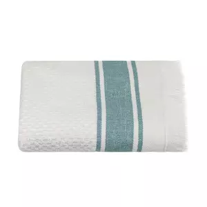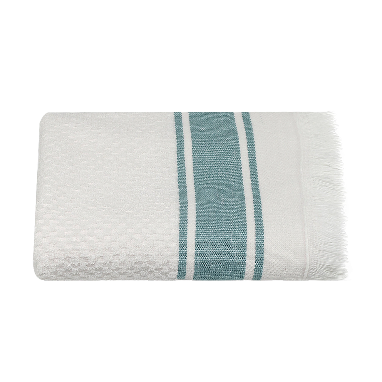 Білий махровий рушник з бордюром і легкою бахромою чудово доповнить
