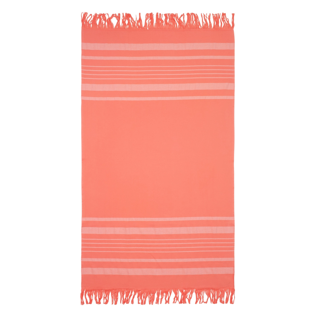 Рушник махрово-тканий пляжний "Смугастий бордюр" з бахромою (кораловий) 90х160см 163167