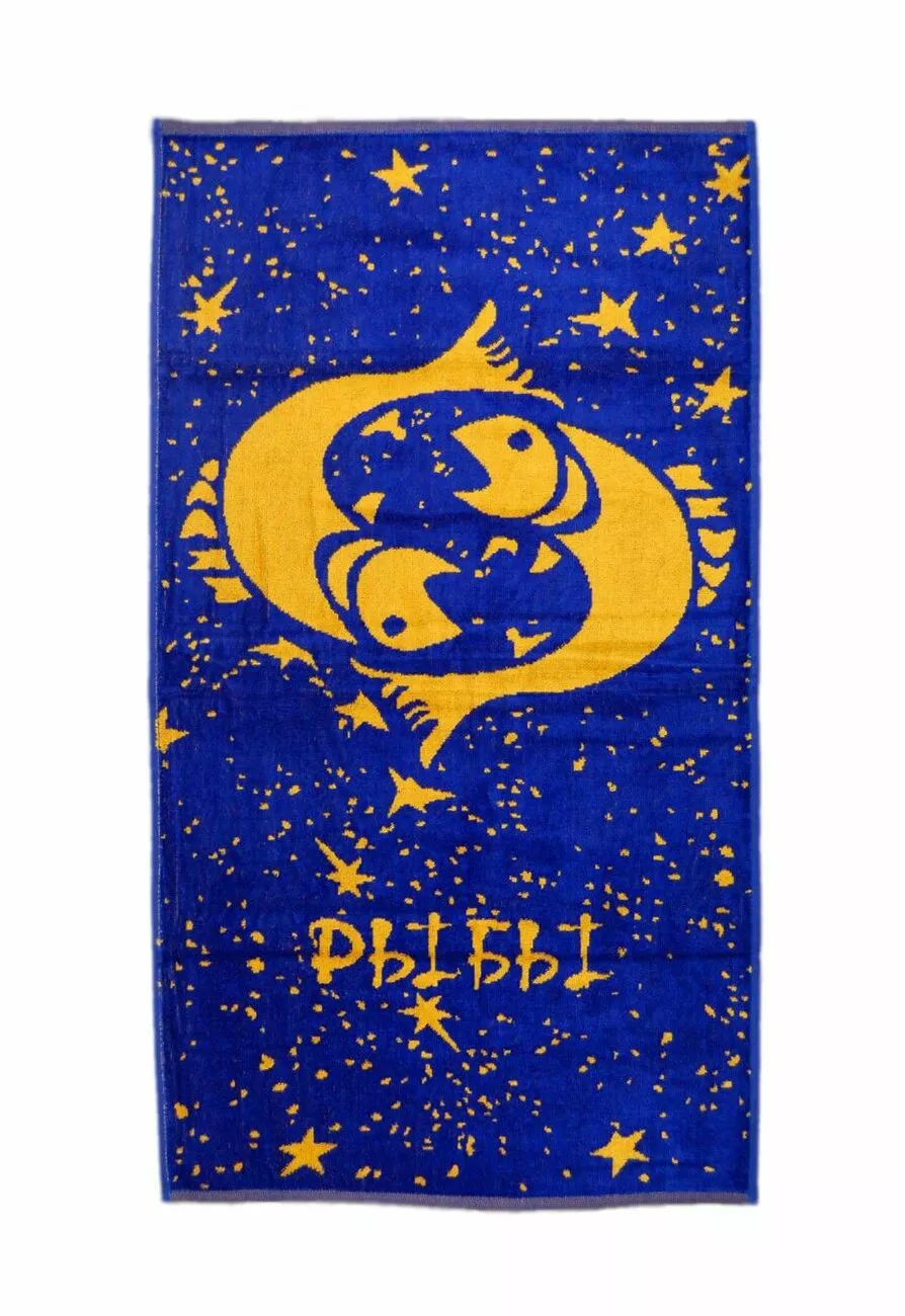 Рушник велюровий Home Line "Зодіак Риби" (синьо-жовті), 50х90см 116855