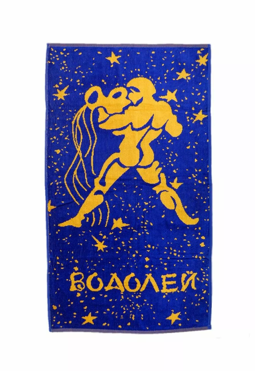 Велюровий рушник з жакардовим малюнком знаку зодіаку в синьо-жовтій
