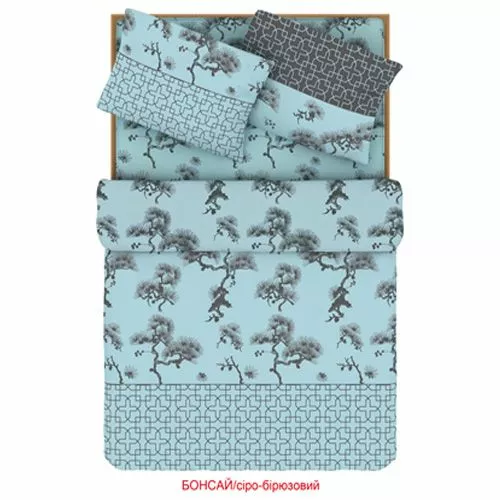 Сімейний комплект постільної білизни Home Line "Бонсай" (бірюзовий) 88502