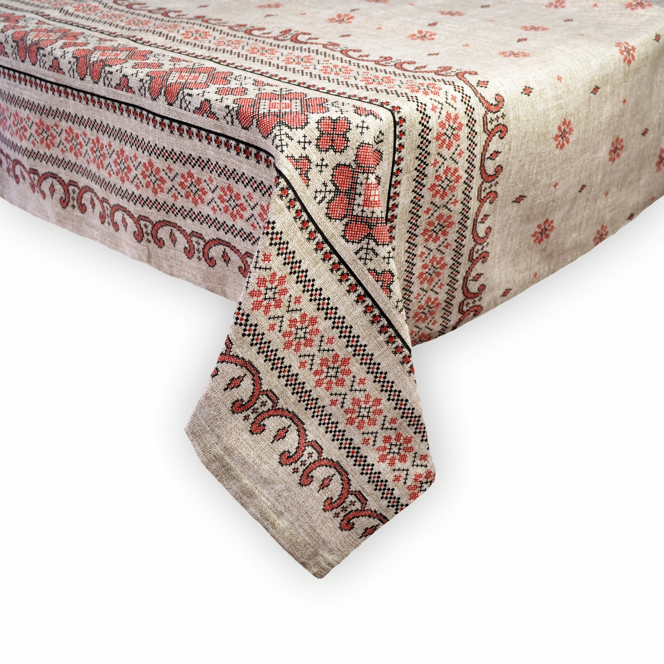 Скатертина рогожка "Червоний орнамент" 122х150см 137757