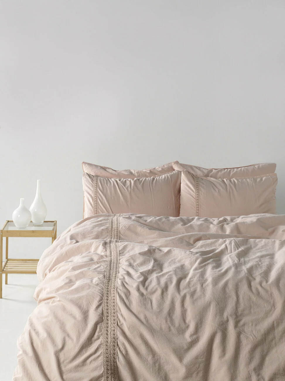 Євро комплект постільної білизни Limasso "Tissue lace pristine" з мереживом (рожевий) 147900