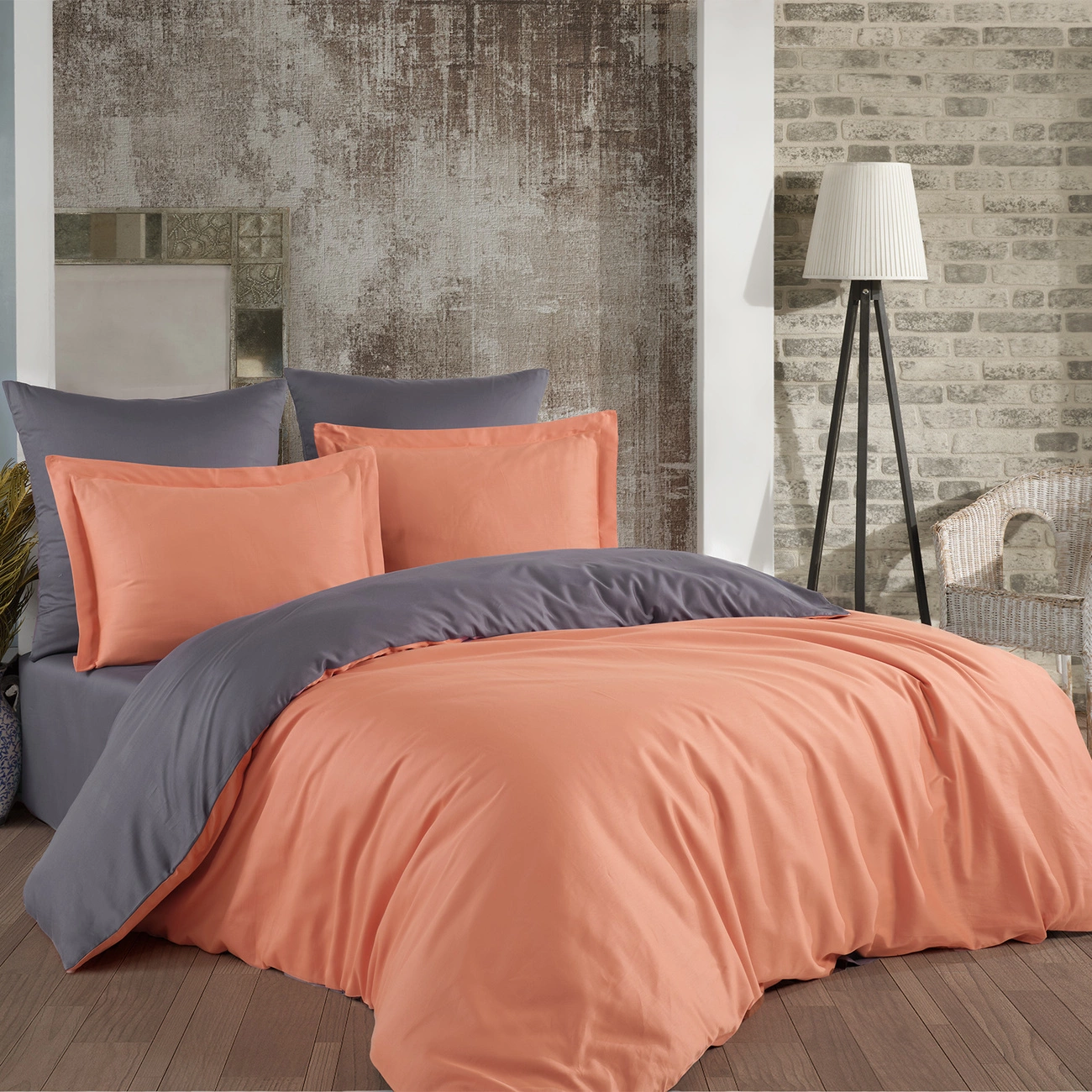Євро комплект постільної білизни "Ozler home" (коралово-сірий) 159673