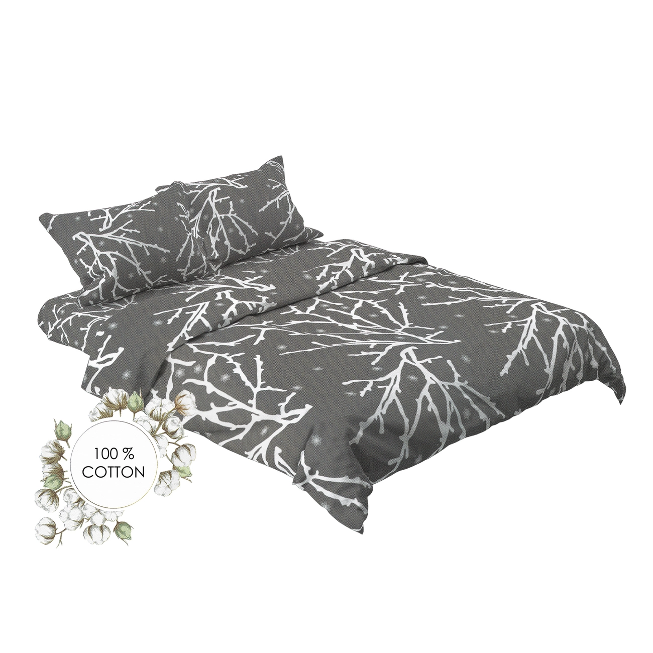Євро комплект постільної білизни "Сіра гілочка" (сірий) 168137